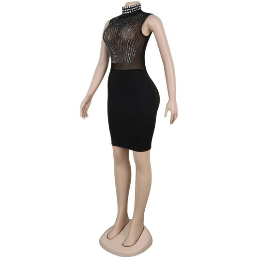 Diamond Accent Sheer Mesh See Through Dress