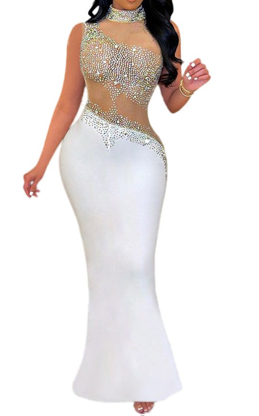 Sheer Top Diamond Accent Maxi Dress